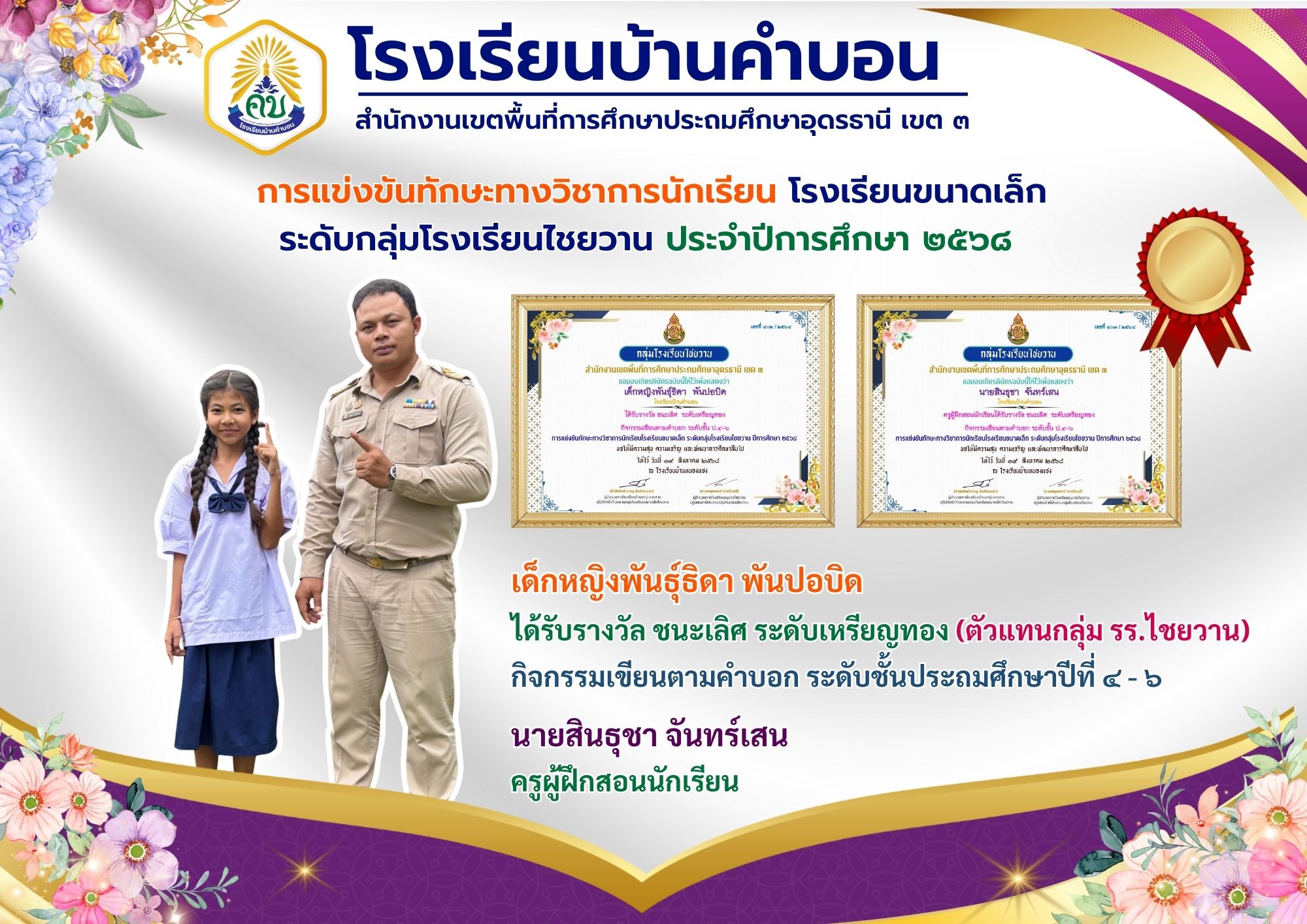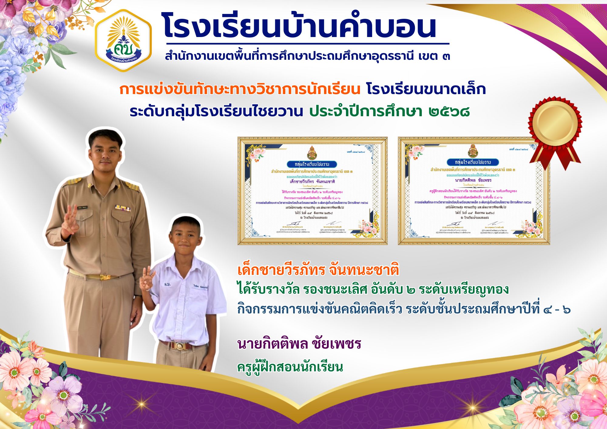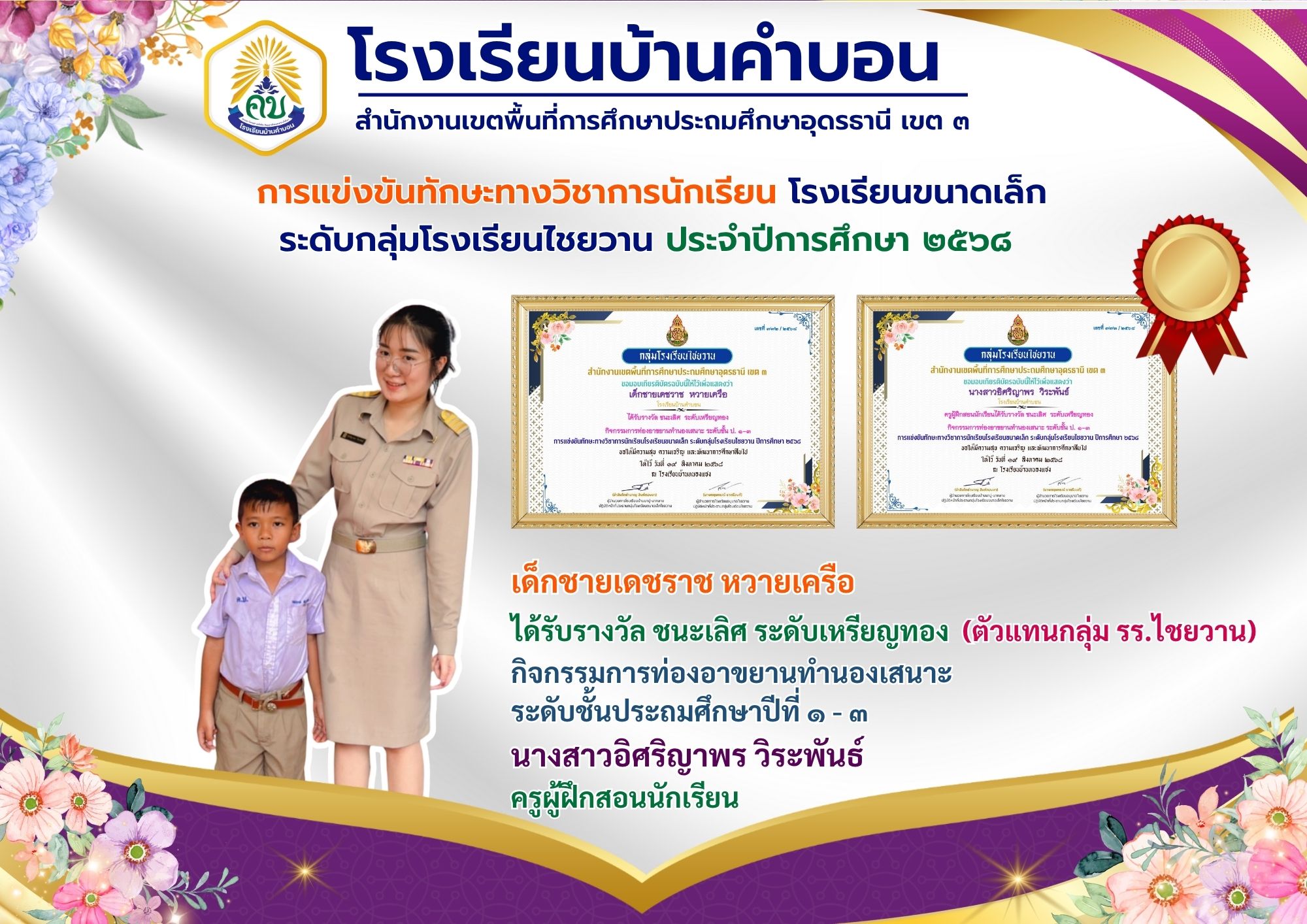 312 โครงการโรงเรียนคุณธรรม สพฐ. สำนักงานเขตพื้นที่การศึกษาประถมศึกษาอุดรธานี เขต ๓ 654321 การแข่งขันทักษะทางวิชาการนักเรียน โรงเรียนขนาดเล็กระดับกลุ่มโรงเรียนไชยวาน ประจำปีการศึกษา ๒๕๖๘ 123456789