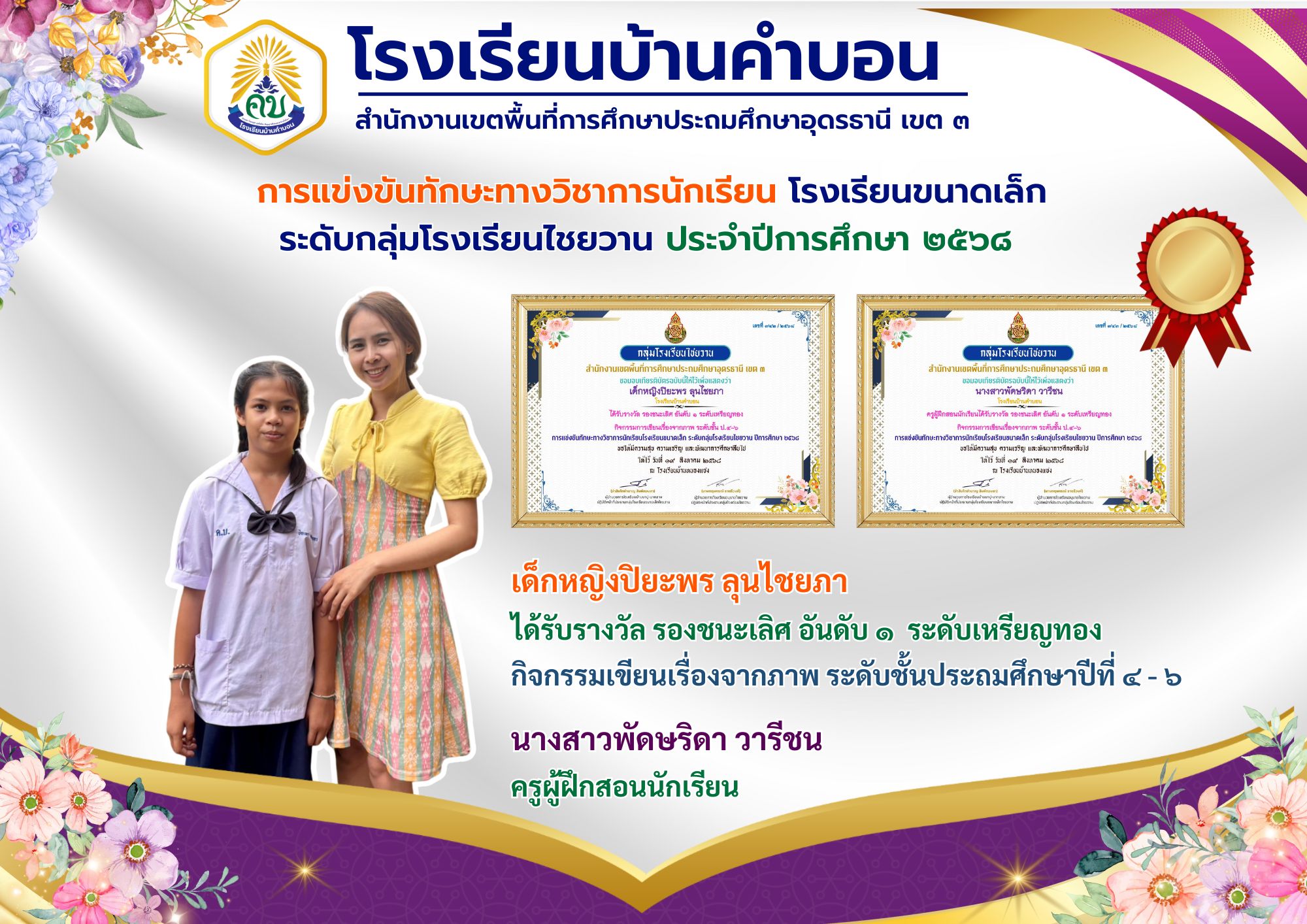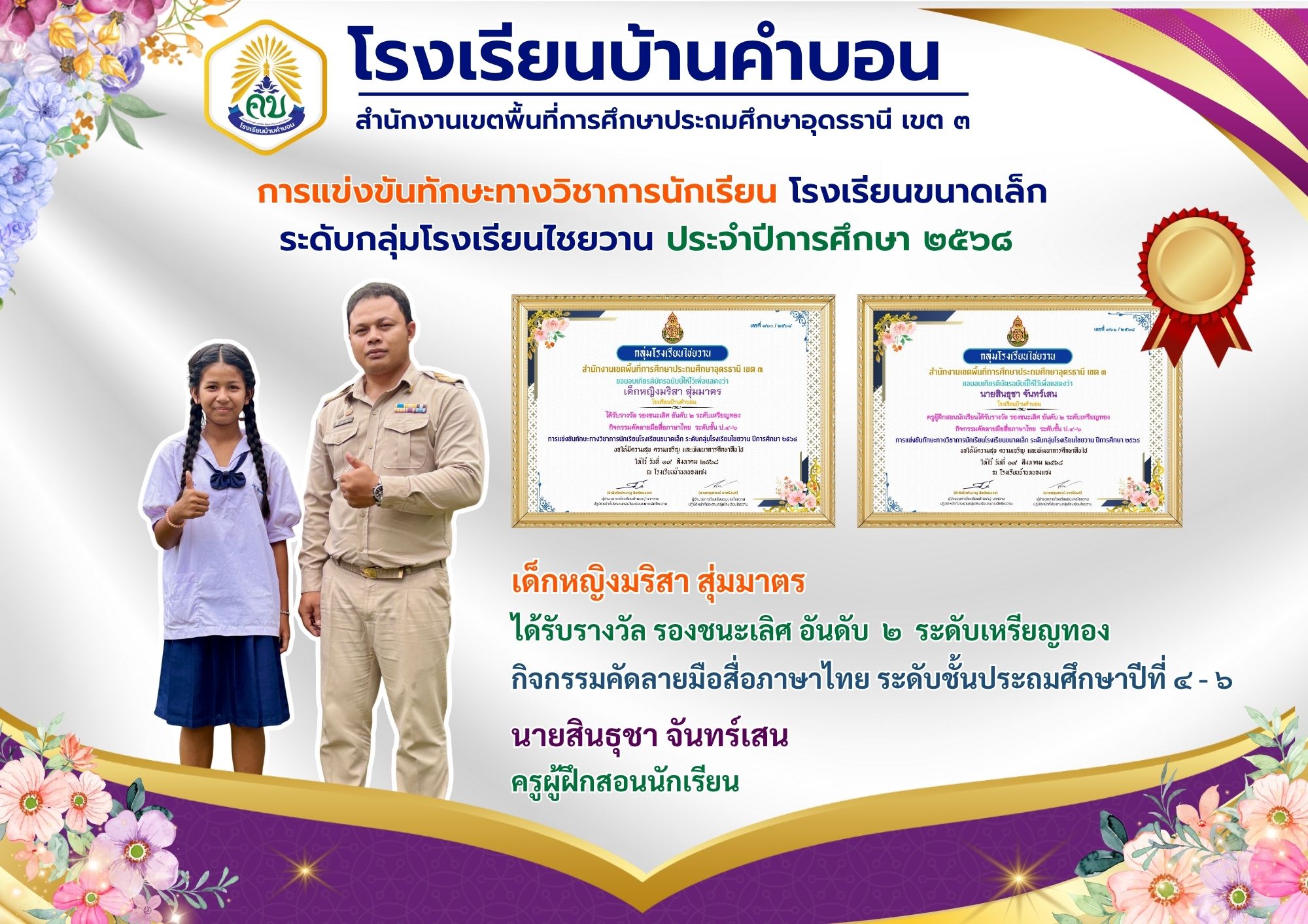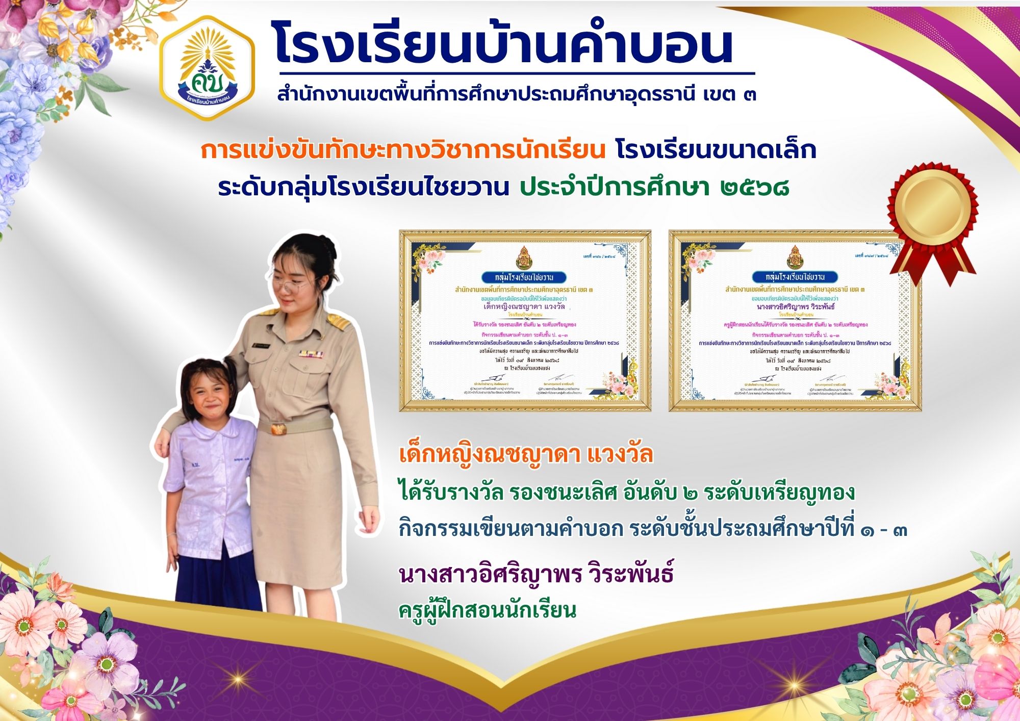 312 โครงการโรงเรียนคุณธรรม สพฐ. สำนักงานเขตพื้นที่การศึกษาประถมศึกษาอุดรธานี เขต ๓ 654321 การแข่งขันทักษะทางวิชาการนักเรียน โรงเรียนขนาดเล็กระดับกลุ่มโรงเรียนไชยวาน ประจำปีการศึกษา ๒๕๖๘ 123456789